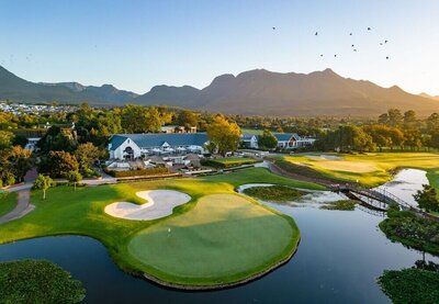 Championship parkland layout ranked among South Africa's top courses with mountain backdrop.