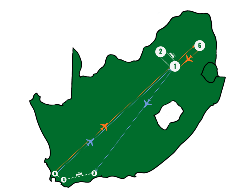 If your trip is continuing, we will have an early breakfast and then catch a 2-hour flight from Cape Town to the Kruger National Park.