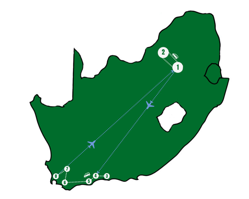 Flight from Cape Town to Johannesburg, connecting with your international return flight. Depart with a heart full of memories, a camera full of photos, and a deep love for Africa. Until next time.